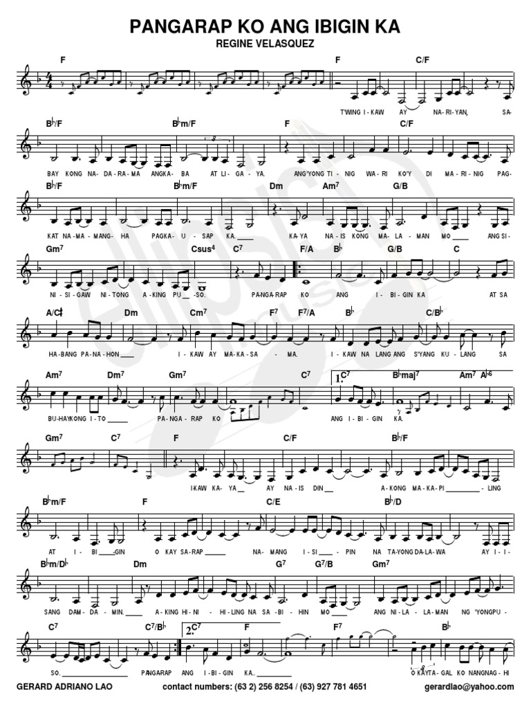 Pangarap Ko Ang Ibigin Ka by Regine Velasquez composed by Ogie Alcasid. Apr 26 2010 PianistAko piano tutorial video accompaniment OPM music sheet no. Pag kausap ka Dm DmC G Kaya nais kong malaman mo Gm Gm7 Csus-C Ang sinisigaw nitong aking puso.